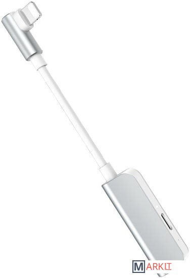 Адаптер с кабелем от разъема Lightning к порту Lightning и 3,5-мм разъему для наушников. Это позволяет одновременно заряжать ваш смартфон и подключить его к наушникам. Практичное решение для устройств, оснащенных исключительно портом Lightning.Максимальный ток зарядки 2 А.