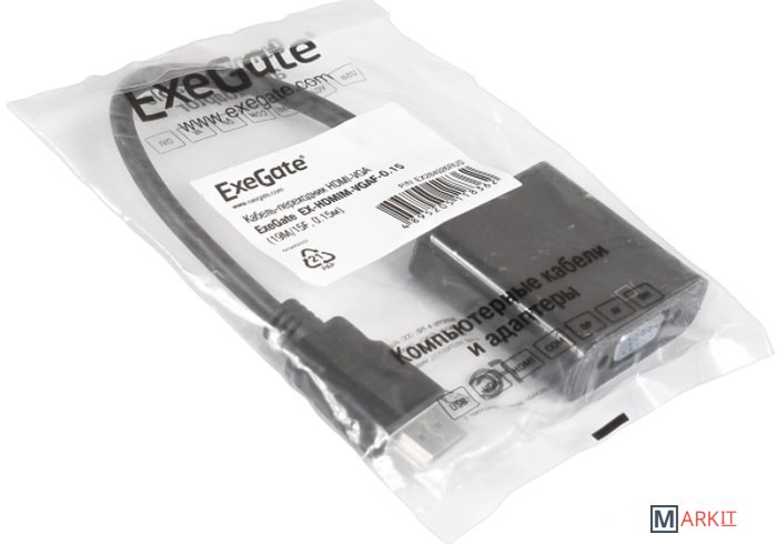 Markit » Кабели, адаптеры, разветвители » Адаптер ExeGate HDMI - VGA EX-HDMIM-VGAF-0.15 (0.15 м, черный)