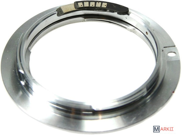 Переходное кольцо Nikon F на Canon EOS позволяет устанавливать объективы с байонетом Nikon F (рабочий отрезок 46,5) на фотоаппараты с байонетом Canon EF/EF-S (рабочий отрезок 44 мм), с обеспечением фокусировки на бесконечность. Данная модель с электронным чипом, который позволяет использовать функцию подтверждения фокусировки. Работает с режимами М или Av, камера выберет выдержку под установленную вручную на объективе диафрагму. Фокусировка и управление диафрагмой производятся в ручном режиме, объективы без кольца диафрагмы могут быть использованы только с максимально открытой диафрагмой.