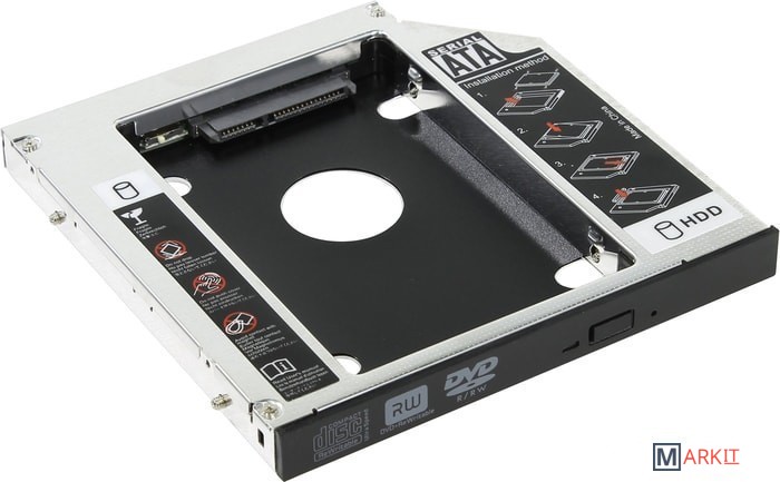 Адаптер для подключения жесткого диска или SSD 2.5" до 12.7 мм в отсек привода ноутбука.