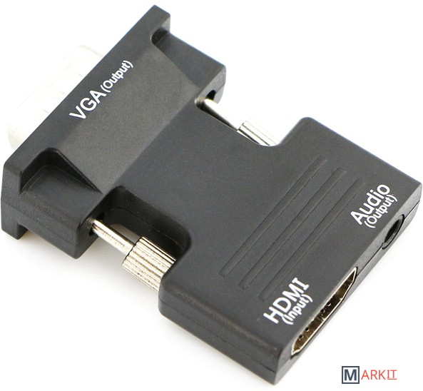 Адаптер преобразует сигнал с видеовыхода HDMI в сигнал VGA (только в этом направлении). Основное предназначение – подключить компьютер, ноутбук, телевизионную или игровую приставку (Nindendo, Xbox) и др. технику с видеовыходом HDMI к монитору, телевизору, проектору и др. экрану с портом VGA. Адаптер позволяет дублировать или расширить пространство рабочего стола Вашего ПК или ноутбука на дополнительный экран. Дополнительно адаптер имеет аудиовыход jack 3.5mm для передачи звука на колонки или наушники. Максимально поддерживаемое разрешение FullHD 1920×1080 @ 60Гц.