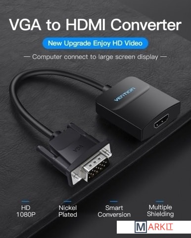 Конвертер преобразует аналоговый VGA видео сигнал, в цифровой HDMI сигнал, плюс аудио. Таким образом вы можете подключить устройства со стандартом VGA, к оборудованию с разъемом HDMI. Конвертер поддерживает технологию Plug and Play, тем самым, не требуя установки дополнительного программного обеспечения и драйверов. При подключении мониторов с большим разрешением, а так же передаче видео сигнала, по средствам кабеля длиной более 3 метров, возможно потребуется использование дополнительного питания, через разъем micro USB