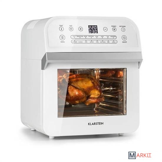 Вы можете выбрать программы для 13 различных блюд, таких как картофель фри, пицца, пирожные, рыба, овощи или курица, и 3 функции: разморозка, поддержание тепла или сушка.