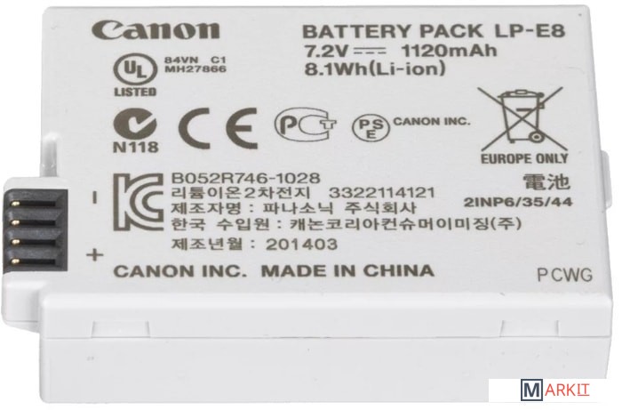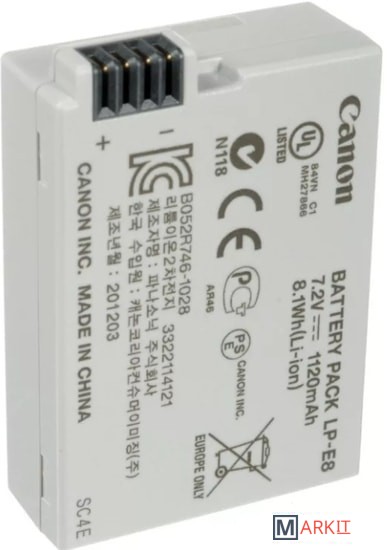 Canon LP-E8 это компактная литий-ионная аккумуляторная батарея, обладающая большой емкостью и имеющая длительный срок службы