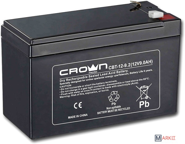 Markit » Аккумуляторы для ИБП » Аккумулятор для ИБП CrownMicro CBT-12-9.2 (12В/9.2 А·ч)