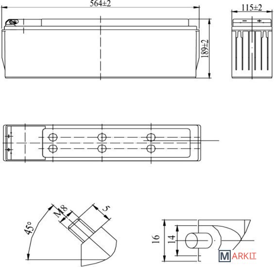 | Максимальный ток разряда | 800 А (5 сек) |