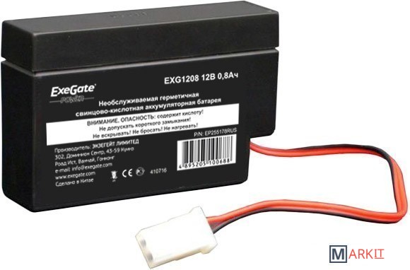 Markit » Аккумуляторы для ИБП » Аккумулятор для ИБП ExeGate Power EXG 1208 (12В/0.8 А·ч) [EP255178RUS]