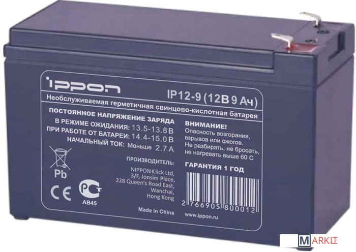 Markit » Аккумуляторы для ИБП » Аккумулятор для ИБП IPPON IP12-9 (12В/8.5 А·ч)