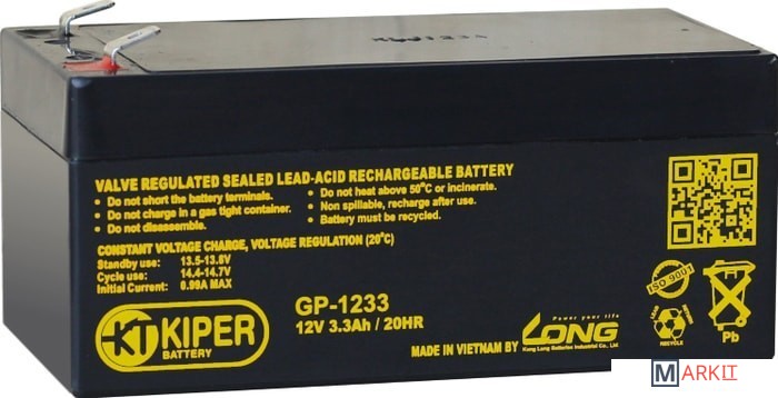 Markit » Аккумуляторы для ИБП » Аккумулятор для ИБП Kiper GP-1233 F1 (12В/3.3 А·ч)