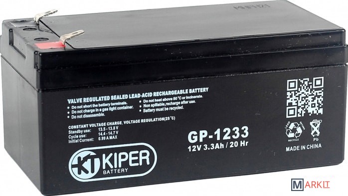 Markit » Аккумуляторы для ИБП » Аккумулятор для ИБП Kiper GP-1233 F2 (12В/3.3 А·ч)