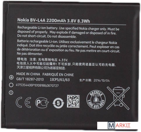 Markit » Аккумуляторы для телефонов » Аккумулятор для телефона Копия Nokia BV-L4A