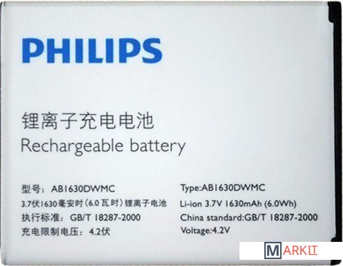 Markit » Аккумуляторы для телефонов » Аккумулятор для телефона Копия Philips Xenium W536 (AB1630DWMC)