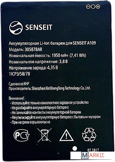 Markit » Аккумуляторы для телефонов » Аккумулятор для телефона Senseit 305878AR
