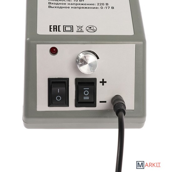 Аппарат для маникюра и педикюра (фрезер) позволяет работать как с натуральными, так и с нарощенным ногтями. С его помощью можно создать форму ногтей, отшлифовать поверхность, изменить толщину ногтевых пластин, удалить кутикулу и заусенции.На блоке питания расположен регулятор скорости, который позволяет меня обороты вращения до 20000 об/мин. Вращение осуществляется в обе стороны.Устройство с 6 фрезами и 6 наждачными насадками обеспечит безопасный процесс и роскошный результат. Чтобы правильно закрепить фрезы необходимо металлический фиксатор повернуть против часовой стрелки до тех пор, пока не вставится фреза. Вставить фрезу и закрутить обратно.