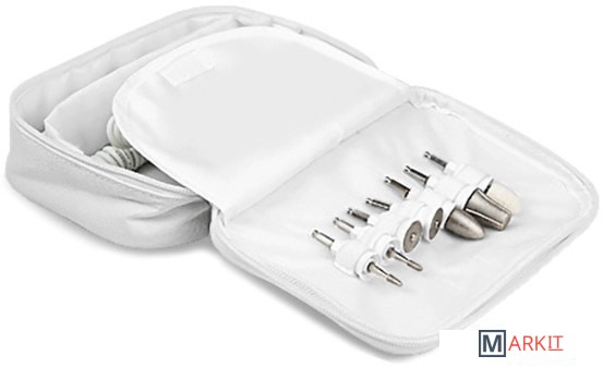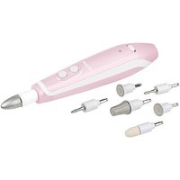 | Комплектация | - фетровый конус;- большая конусная насадка;- остроконечная насадка;- малая конусная насадка;- диск с мелким напылением;- диск с крупным напылением;- насадка для удаления грубой кожи. |