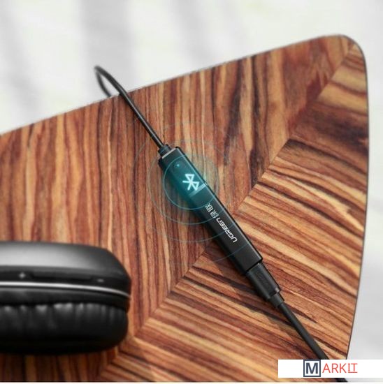 Блютуз аудио трансмиттер UGREEN CM107-40761; BT 5.0, HIFI/SBC/AAC/apt-X, с кабелем AUX, Black