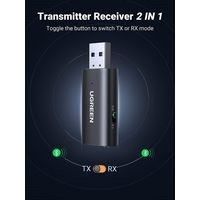 Блютуз аудио ресивер + трансмиттер UGREEN CM523-60300; вход: AUX; BT 5.1; питание USB-A; SBC, AAC; с микрофоном; Black
