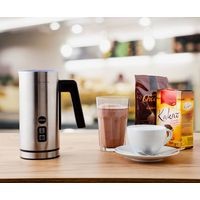 Это небольшое устройство имеет две насадки для вспенивания и целых четыре функции : вспенивание холодного и теплого молока и смешивание холодного или нагревающего молока. Элегантный кувшин изготовлен из нержавеющей стали с двойными стенками , а внутренняя емкость выполнена из нержавеющей стали с антипригарным покрытием . Благодаря прозрачной крышке можно следить за этапом приготовления молока. Устройство имеет емкость 240 мл при подогреве и 120 мл при вспенивании (из-за значительного увеличения объема молока при этом процессе).Поворотное основание с нескользящими ножками , выключатель с контрольной лампочкой и автоматическое отключение гарантируют простоту и безопасность использования пенообразователя. Надежность устройства обеспечивается качественными комплектующими STRIX.Машина нагревает молоко до температуры примерно 65°C (+/- 5°C).