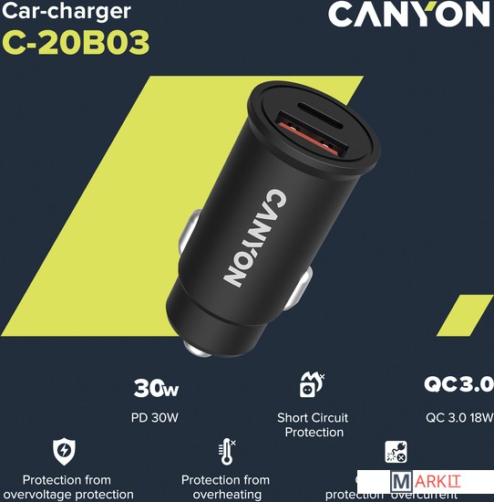 Markit » Зарядные устройства » Автомобильное зарядное Canyon C-20B03