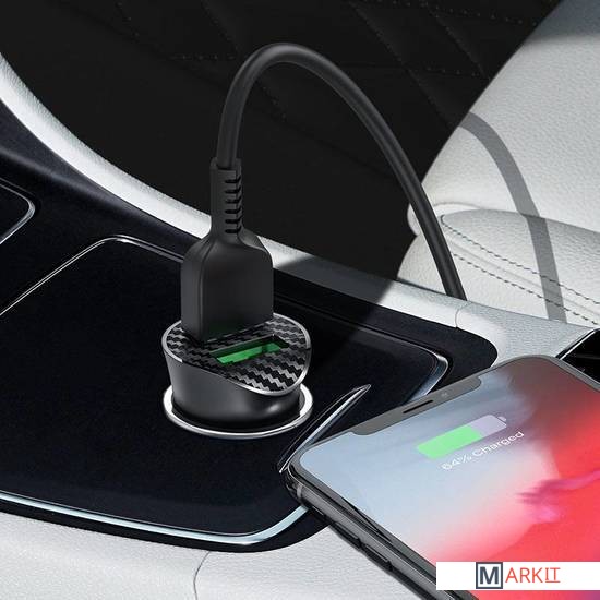 Markit » Зарядные устройства » Автомобильное зарядное Hoco Z39 Farsighted Lightning (черный)