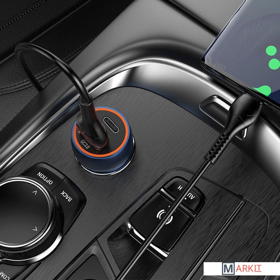 Z46A Blue whale, автомобильное зарядное устройство, Type-C 20W и USB 18W выходы, поддержка протоколов быстрой зарядки:1. Материал изготовления: алюминиевый сплав + ABS.2. Длина*диаметр: 54*25мм. Вес: 20г. Вес набора с кабелем: 37г.3. Выход:Type-C – 20W (для PD, для QC, для FCP, для AFC).USB – 18W (для QC, для FCP, для AFC).Общий выход: 5V / 3A.4. Набор с зарядным кабелем 1м Type-C на Lightning / USB на Type-C.
