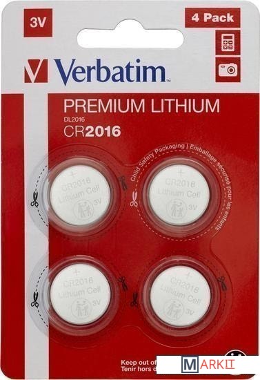 Markit » Батарейки, аккумуляторы, зарядные » Батарейка Verbatim CR2016 Verbatim литиевая блистер 4 шт. 49531