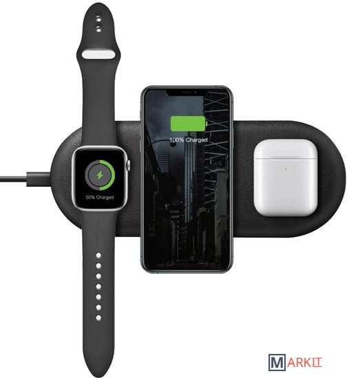 EnergEA WiDisc Trio 3-in-1 представляет собой беспроводную зарядную станцию на три устройства: смартфон с поддержкой индукционной зарядки стандарта Qi, умные часы Apple Watch и беспроводные наушники в зарядном кейсе. Такое зарядное устройство удобно использовать как дома, так и на рабочем месте в офисе, оно позволит избавиться от лишних проводов и оптимизировать пространство на рабочем столе или прикроватном столике. Зарядное устройство выполнено в минималистичном компактном дизайне и отлично впишется в интерьер жилой комнаты, спальни или офиса. При этом, благодаря скромным размерам, не займет много места. Мощность зарядки составляет 5 Вт/7.5 Вт/10 Вт. В комплект включен кабель USB Type C. Конструкция EnergEA WiDisc Trio 3-in-1 не предусматривает модуль для зарядки смарт-часов Apple Watch, для этих целей используется штатный кабель, который аккуратно устанавливается в корпус зарядного устройства. Немалым достоинством является и простота использования зарядки EnergEA WiDisc Trio 3-in-1: вы просто кладете смартфон, часы или наушники на поверхность зарядного устройства, не задумываясь о правильности расположения гаджета. Противоскользящее покрытие из высококачественной искусственной кожи предотвратит скольжение и случайное падение заряжаемых устройств. Максимальная выходная мощность зарядного устройства составляет 10 Вт, что будет достаточным для быстрой зарядки портативных устройств. Прочные и износостойкие материалы, из которых изготовлена зарядная станция, обеспечат продолжительный срок службы. Имеется встроенная интеллектуальная защита от перегрузок, перегрева, короткого замыкания, которая гарантирует безопасность зарядки ваших гаджетов, а также обеспечивает ускорение процесса зарядки на 40%. С зарядной станцией EnergEA WiDisc Trio 3-in-1 вы несомненно оцените все достоинства беспроводной зарядки и избавитесь от надоевших проводов, при этом не беспокоясь о сохранности своих мобильных устройств.