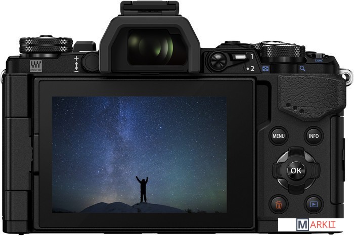 Обновленная версия беззеркальной системной камеры OM-D E-M5. Как и предшественница, Mark II может работать почти в любых погодных условиях благодаря защите от дождя, пыли и холода. Аппарат имеет улучшенную 5-осную систему стабилизации изображения. Изменению подверглись и элементы управления: клавиша Fn и функциональное колесо теперь сильнее выступают из корпуса для удобства использования. Камера имеет электронный видоискатель и поворотный 3” сенсорный дисплей. Своему быстродействию камера обязана обновленному процессору TruePic VII, который используется во флагманской модели OM-D E-M1. Так же увеличена скорость и качество фокусировки: теперь она производится по 81 зоне (в предыдущей модели — 35 зон). Частота серийной съёмки возросла с 9.2 до 10 кадров в секунду, а скорость затвора увеличилась до 1/16 000. Видео может записываться в разрешении Full HD с частотой 60 кадров в секунду. Комплект без объектива.