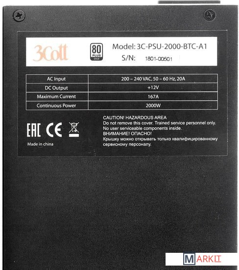 Markit » Блоки питания » Блок питания 3Cott 3C-PSU-2000-BTC-A1