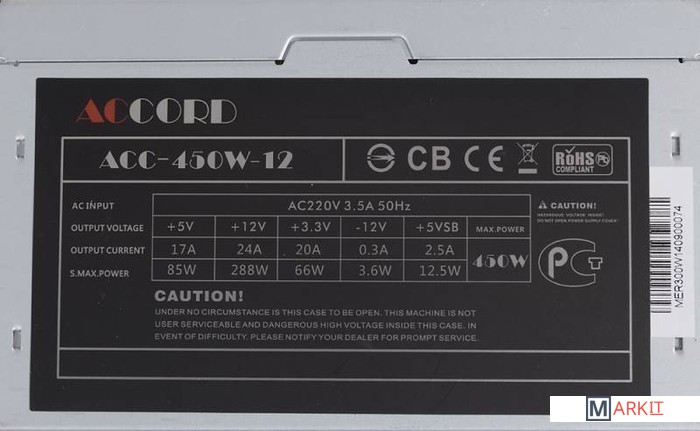 Markit » Блоки питания » Блок питания Accord ATX 450W (ACC-450-12)