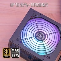Этот стильный и изысканный блок питания с 12-сантиметровым вентилятором ARGB улучшает внешний вид вашего игрового устройства и служит эффективным источником питания для вашей системы. Оживите свою систему с помощью 13 предустановленных режимов подсветки, которыми можно легко управлять с помощью специальной кнопки. Благодаря адресуемому разъему RGB устройство совместимо с системными платами с адресуемой RGB подсветкой.Устройство сертифицировано по стандарту 80Plus Gold, что гарантирует эффективность 92%+.Сертификат 80Plus Gold гарантирует повышение эффективности до 92% +Благодаря адресуемому разъему RGB устройство совместимо с системными платами с адресуемой RGB подсветкойВстроенная схема преобразования тока DC-DC помогает повысить КПД и добиться точного регулирования напряжения даже в условиях высоких перекрёстных нагрузокПрименение японских конденсаторов с температурным диапазоном до 105°С позволяет повысить производительность БПДва коннектора питания обеспечивают совместимость с современными высокопроизводительными моделями процессоров AMD Ryzen120-мм вентилятор обеспечивает высокое давление воздуха и скорость вращения при минимальном уровне шума, поэтому БП работает максимально тихоВстроенный APFC обеспечивает улучшенную стабилизацию напряжения и сниженное энергопотребление (коэффициент APFC > 0,9)