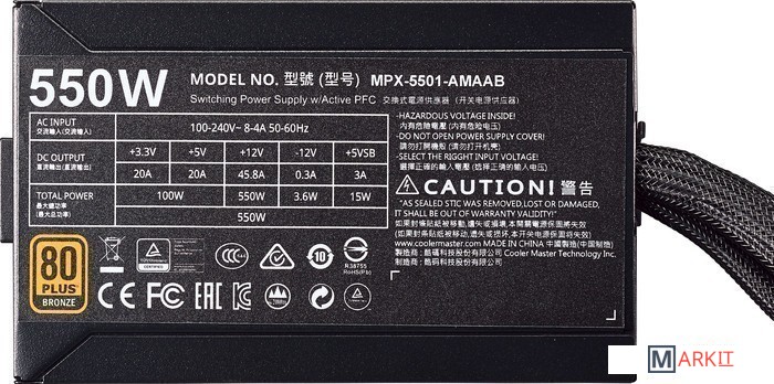 Markit » Блоки питания » Блок питания Cooler Master MasterWatt 550 MPX-5501-AMAAB