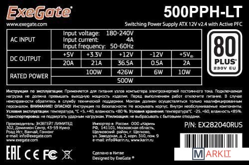 Markit » Блоки питания » Блок питания ExeGate 500PPH-LT 80 Plus EX282040RUS-S