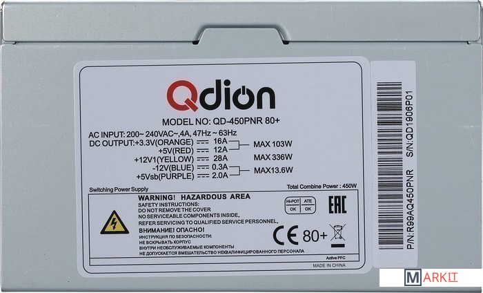 Markit » Блоки питания » Блок питания Qdion QD-450PNR 80+