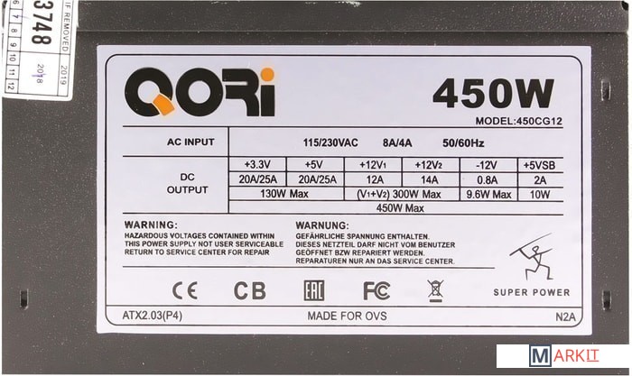 Markit » Блоки питания » Блок питания Qori 450CG12