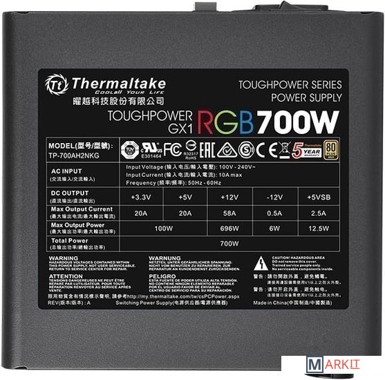 Markit » Блоки питания » Блок питания Thermaltake Toughpower GX1 RGB 700W Gold TP-700AH2NKG