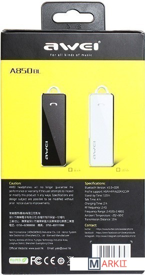 Markit » Bluetooth-гарнитуры » Bluetooth гарнитура Awei A850BL (белый)