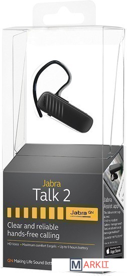 | Комплект поставки | Jabra Talk 2, USB кабель, заушное крепление, сменные амбушюры, документация |
