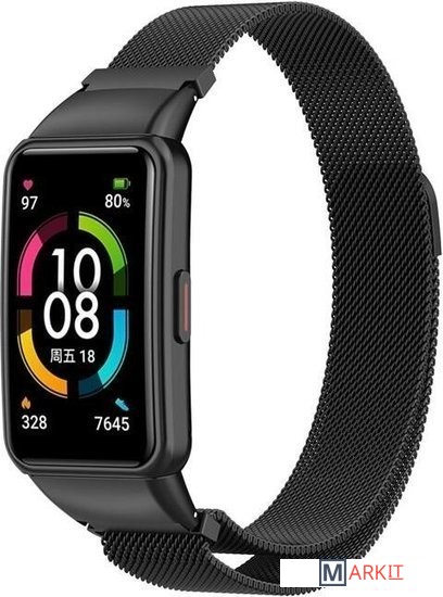 Markit » Сменные ремешки и браслеты » Браслет Rumi Milanese loop металлический для Huawei Band 6 / Honor Band 6 (черный)