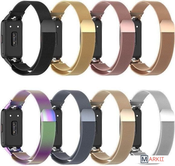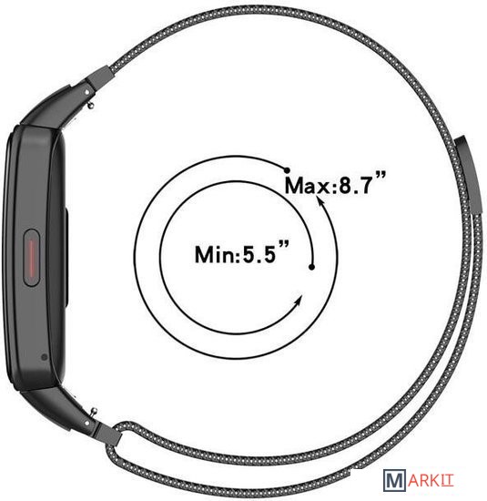 Классический металлический браслет с плетением в "миланском" стиле. Легко регулируется с помощью магнитной застёжки, подойдет как на женскую так и на мужскую руку. Легко устанавливается на фитнес-часы Huawei Band 6 или Honor Band 6 без инструментов и надёжно сидит на руке.