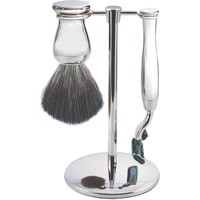 Хромированный набор из помазка, бритвы и подставки, который включает в себя все для комфортного и продуктивного бритья. Бритвенный станок оснащен системой Mach3. Все металлические элементы бритвы сделаны из высококачественной нержавеющей стали и покрыты никелем для придания особого блеска и дополнительной стойкости к коррозии. Помазок из новой коллекции с ворсом Black Synthetic Fibre. Набор поставляется в подарочной упаковке.