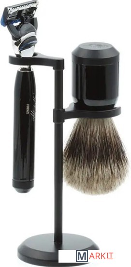 Бритвенный станок, совместимый с кассетами Gillette Fusion (одна кассета в комплекте).Помазок с барсучьим ворсом.Подставка из металлического сплава.