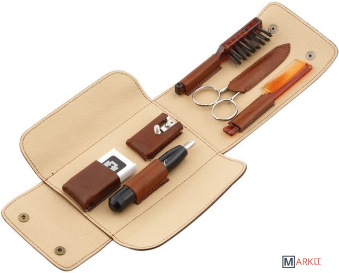 Дорожный бритвенный набор IL Ceppo Firenze SV1210SMХарактеристики:• дорожный бритвенный Т-образный станок• лезвия (10 шт. в упаковке) — нержавеющая сталь• ножницы для ухода за усами и бородой изготовлены из нержавеющей стали• щетка и расческа для ухода за усами и бородой — высококачественный ABS-пластик• чехол из натуральной кожи ручной работыПутешествия, деловые поездки, командировки — неотъемлемая часть жизни мужчин. Чтобы в любой ситуации выглядеть безупречно, в арсенале каждого мужчины должен быть качественный дорожный бритвенный набор.Представляем вашему вниманию идеальные дорожные наборы для путешествий. Элегантные аксессуары для бритья высокого качества и функциональности. Различные комплектации и системы бритья. Каждый дорожный набор обеспечивает комфортную процедуру ухода в поездке и исключительный результат — идеально гладкое бритьё и безупречный образ.Ключевые особенности мужских бритвенных наборов для путешествий:• компактные размеры и лёгкий вес• дорожный чехол изготовлен вручную из натуральной кожи, стойкой к износу• эргономичная форма ручки бритвенного станкаЧехол ручной работы из коричневой натуральной кожи, изготовленный во флорентийском стиле, плотно вмещает бритвенные аксессуары. Бритвенный станок из алюминия c Т-образным лезвием обеспечивает прекрасное бритье, оставляя кожу гладкой и мягкой. Щётка, расчёска и ножницы обеспечивают комфортный и качественный уход за усами и бородой.С дорожными наборами IL Ceppo Firenze ежедневное бритье и уход в поездке станут по-настоящему легкими и профессиональными.