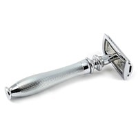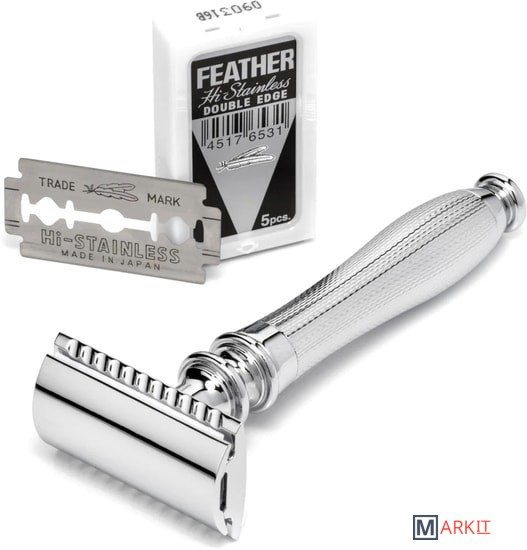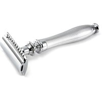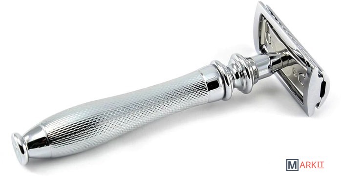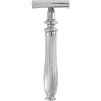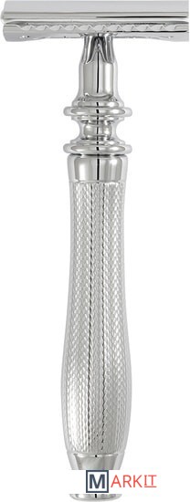 Традиционный Т-образный станок с хромированной ручкой. Узор на ручке — не просто украшение. Он облегчает использование бритвы даже мокрыми руками. Бритва оснащена закрытым гребнем и состоит из трех частей. Предназначена для ежедневного бритья. Технология тройного хромирования делает бритву надежным спутником мужчины на долгие годы. Долговечность позволит сэкономить на бритье не одну тысячу рублей (по сравнению с кассетными бритвами). Вес 116 гр., длина ручки 7,7 см.
