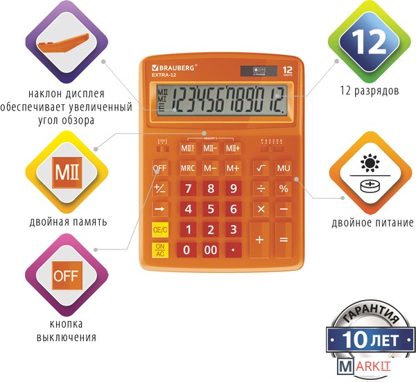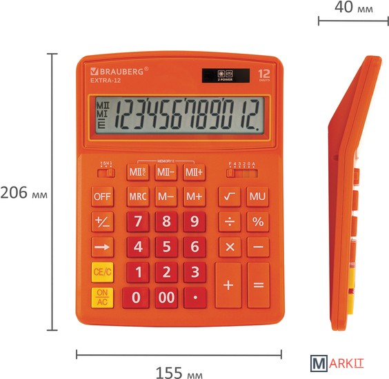 Markit » Калькуляторы » Бухгалтерский калькулятор BRAUBERG Extra 12-RG 250485 (оранжевый)