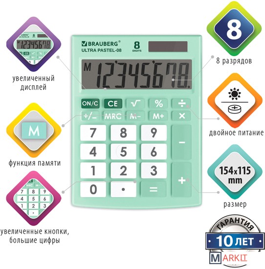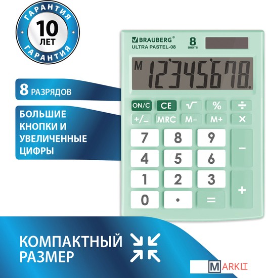 Markit » Калькуляторы » Бухгалтерский калькулятор BRAUBERG Ultra Pastel-08-LG 250515 (мятный)
