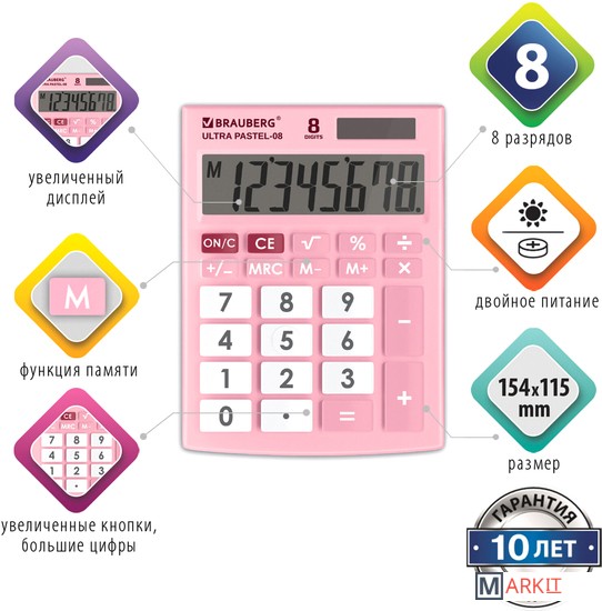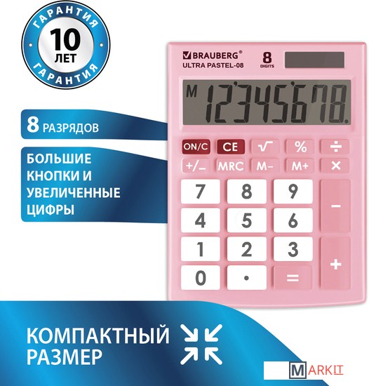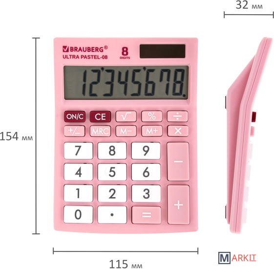 Markit » Калькуляторы » Бухгалтерский калькулятор BRAUBERG Ultra Pastel-08-PK 250514 (розовый)