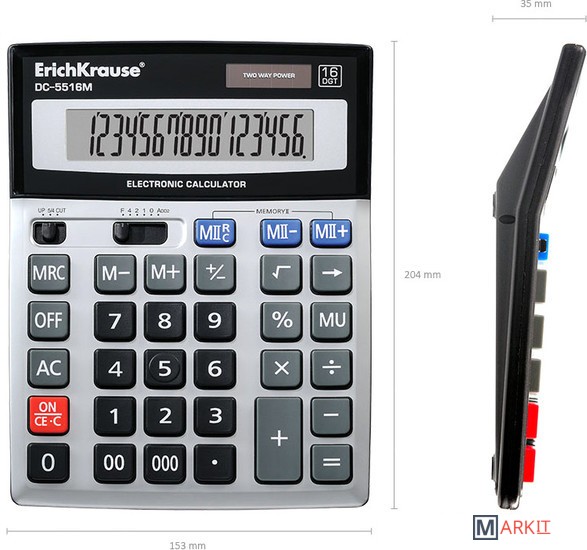 Markit » Калькуляторы » Бухгалтерский калькулятор Erich Krause DC-5516M 16-разр. 45516