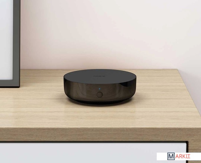 Центр управления умного дома Aqara подключается к интернету через разъем Ethernet или через Wi-Fi. Хаб имеет встроенный ИК-пульт и управляет традиционной бытовой техникой с ИК портами. Разъем питания – microUSB. Для подключения компонентов умного дома хаб поддерживает ZigBee, Bluetooth и Wi-Fi.