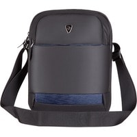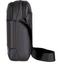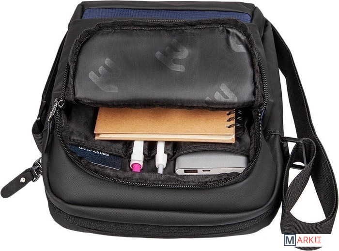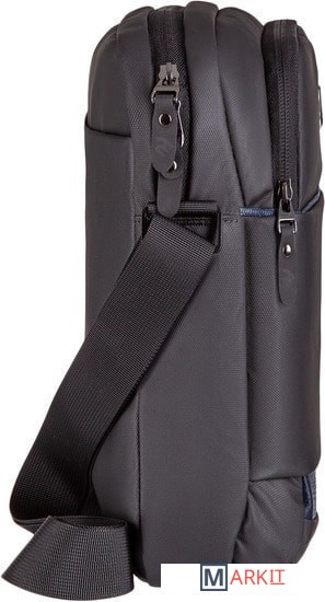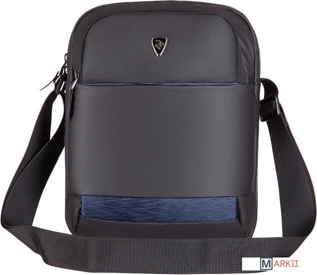Компактная городская сумка предназначена для ежедневного использования. Изготовлена из полиуретана черного цвета с декоративными элементами темно-синего цвета. Комплектуется регулируемым плечевым ремнем.